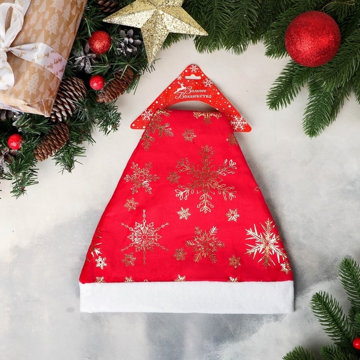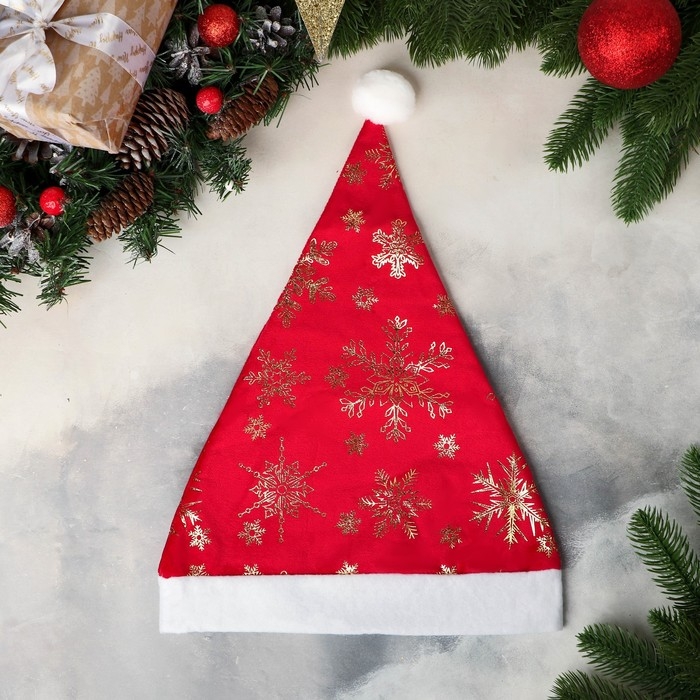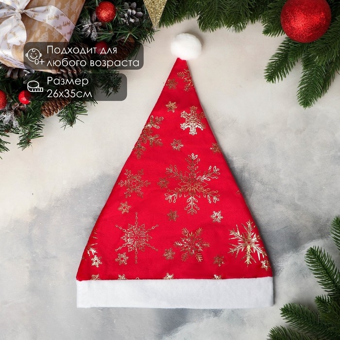 Колпак новогодний "Снежинка голд" 26х35 см, красный