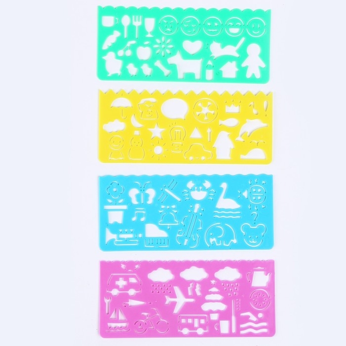 Трафарет «Фигуры», набор 4 шт., размер 1 шт. — 6,5 × 14 × 0,1 см, цвет МИКС