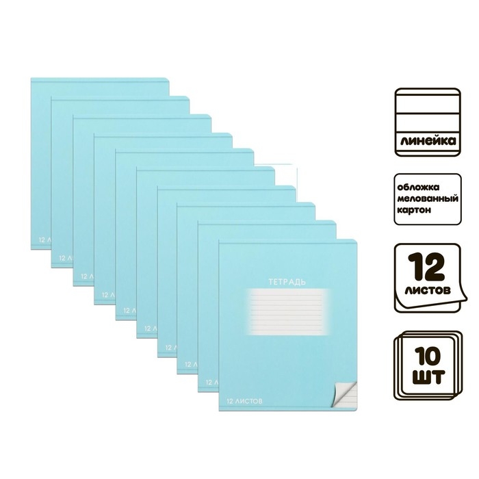 Комплект тетрадей из 10 штук, 12 листов в линию Calligrata "Школьная. Голубая", обложка мелованный картон, ВД-лак, блок №2, белизна 75% (серые листы)
