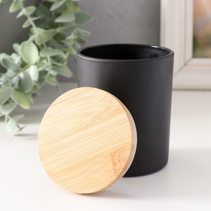 Банка для свечей стекло с крышкой "Чёрная матовая" 220 мл 7х7х8,4 см