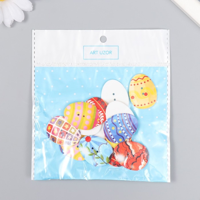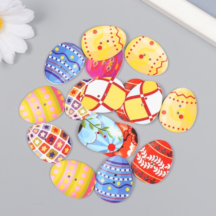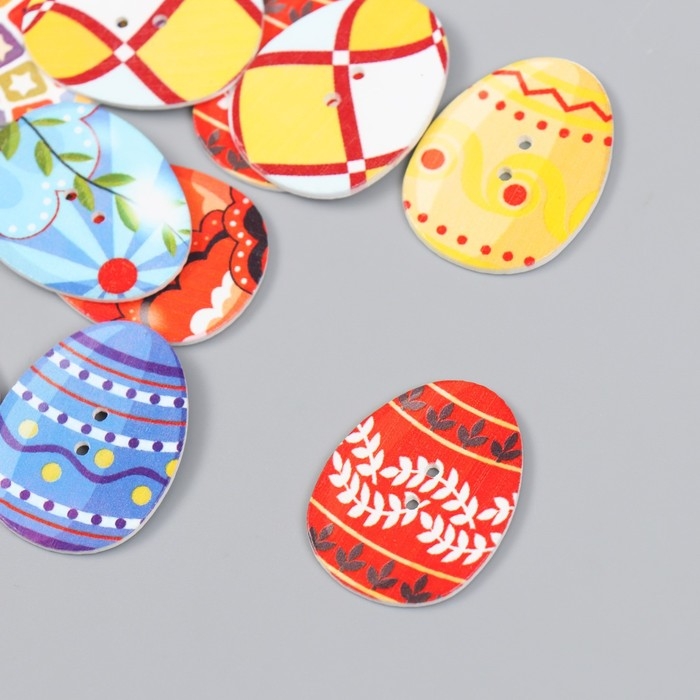 Пуговицы дерево для творчества 2 прокола "Пасхальные яички" набор 16 шт 3,1х2,4 см