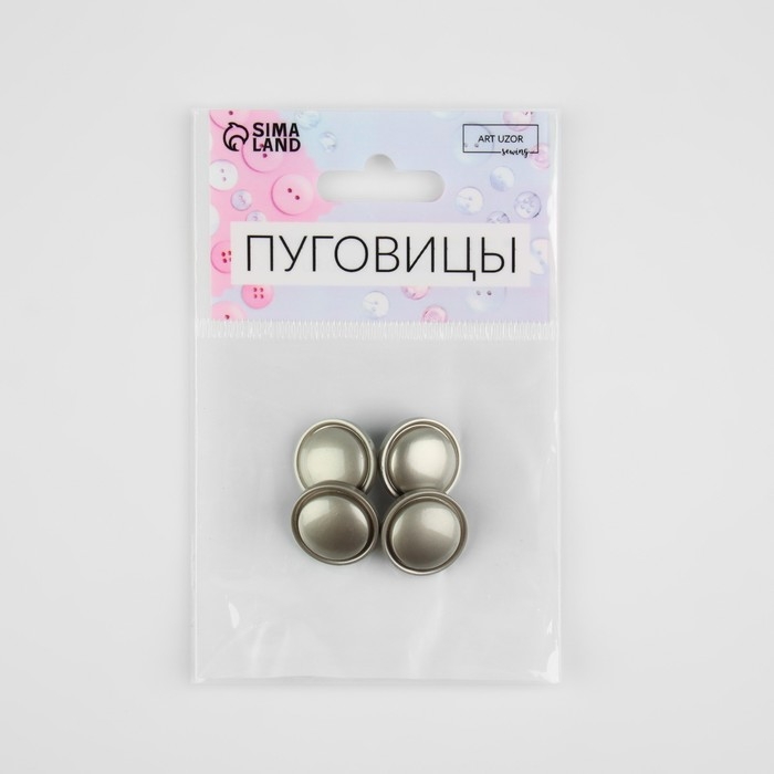 Набор металлических пуговиц на ножке, d = 18 мм, 4 шт, матовые, цвет серебряный