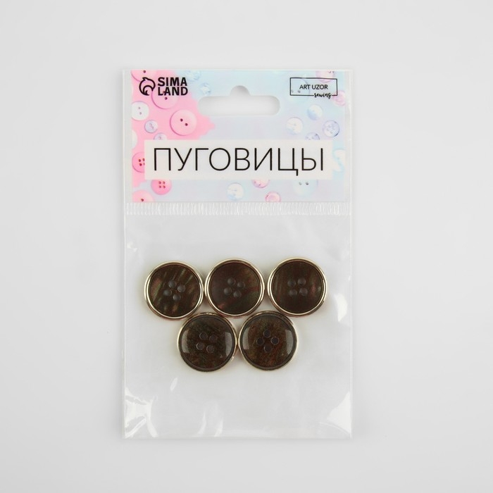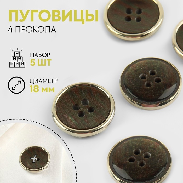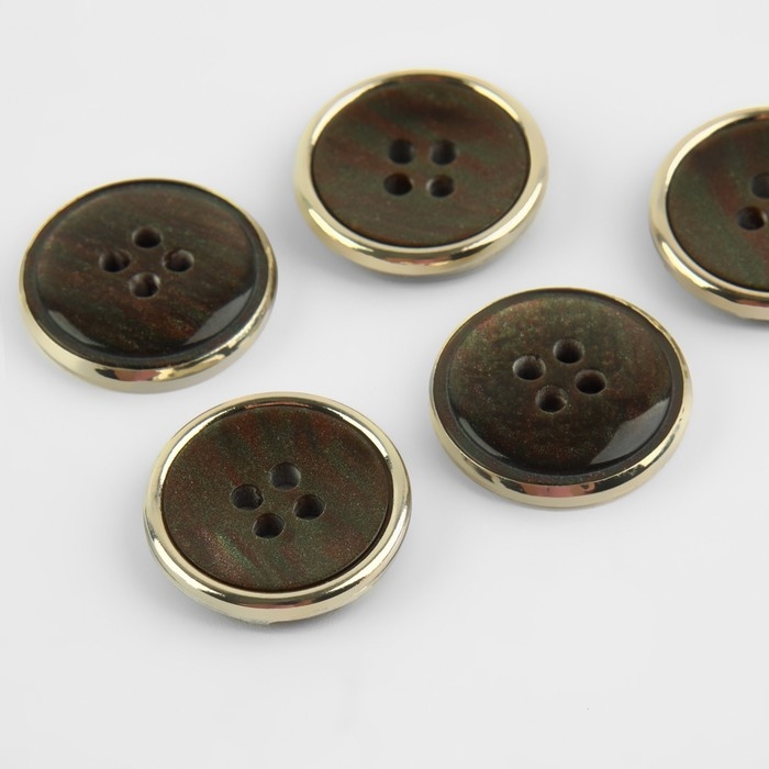 Набор пуговиц, 4 прокола, d = 18 мм, 5 шт, цвет графитовый/золотой