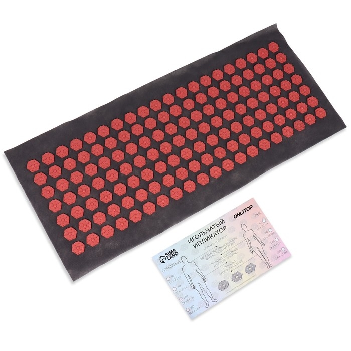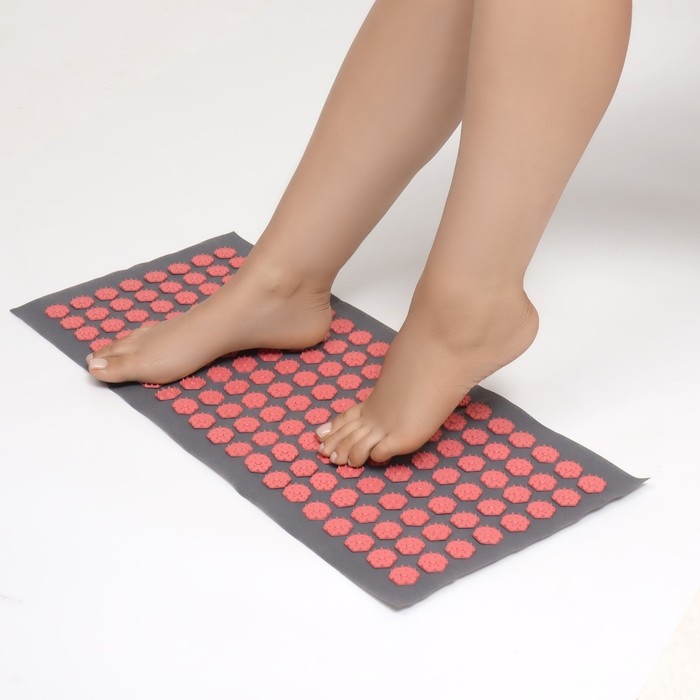 Ипликатор-коврик, основа спанбонд, 140 модулей, 28 × 64 см, цвет тёмно-серый/красный