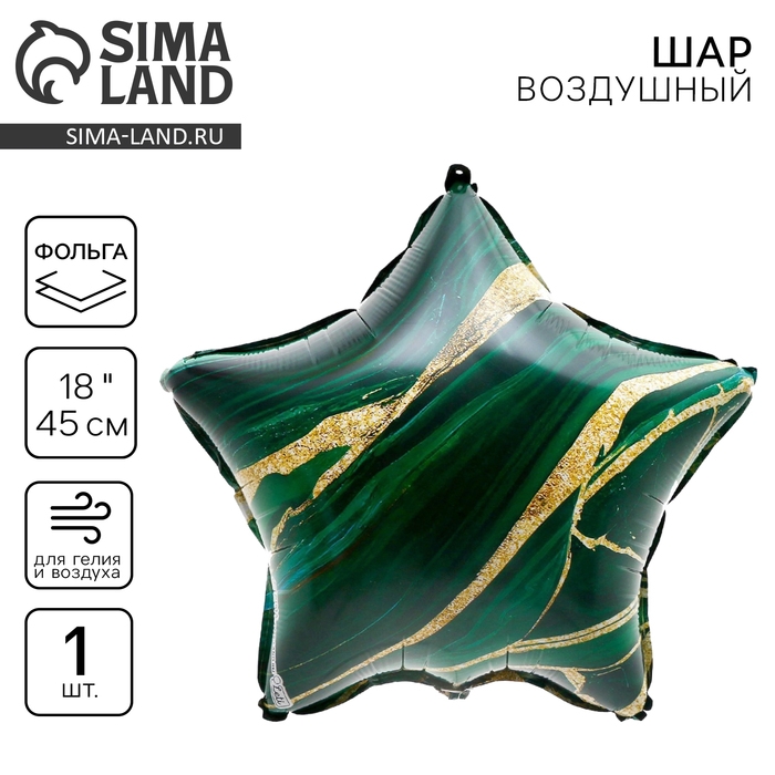 Шар из фольги в форме звезды выглядит стильно и современно. Его дизайн напоминает узор камня малахит. С помощью шаров можно легко оформить помещение для праздника. Шары можно подвесить под потолок или разложить по полу, собрать из них букет или прикрепить к стене.