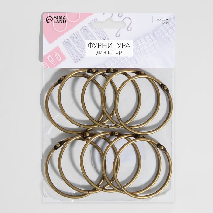 Кольцо для карниза, разъёмное, d = 50/56 мм, 10 шт, цвет бронзовый