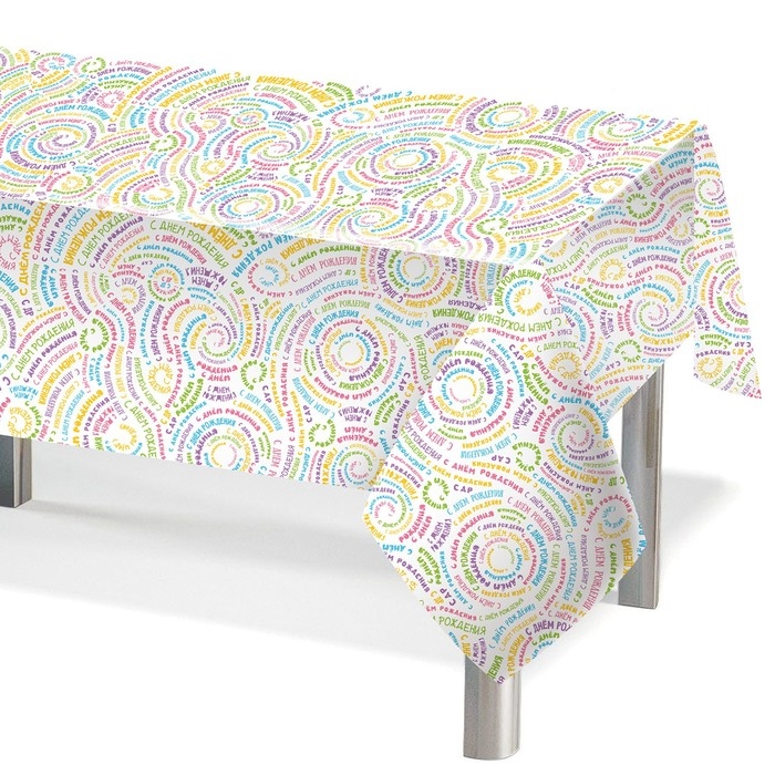Скатерть одноразовая «С днём рождения», разноцветный, 120 × 180 см