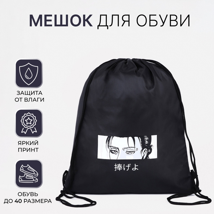 Мешок для обуви на шнурке, «Аниме», цвет чёрный