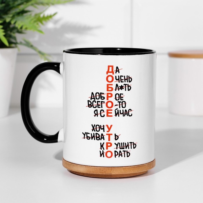 Кружка сублимация "Доброе утро (нет)", цвет белый, объем 320 мл, дно черного цвета