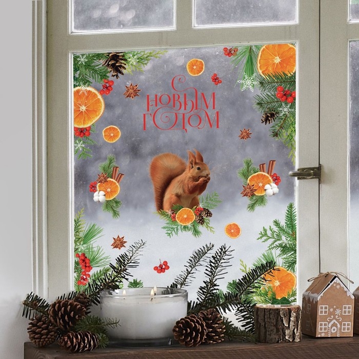 Наклейки новогодние на окна «Новогодний лес», 50 х 70 см, Новый год