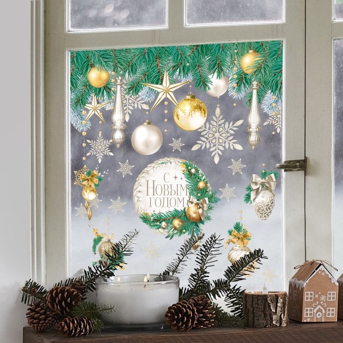 Наклейки новогодние на окна «Мороз и солнце», 50 х 70 см, Новый год