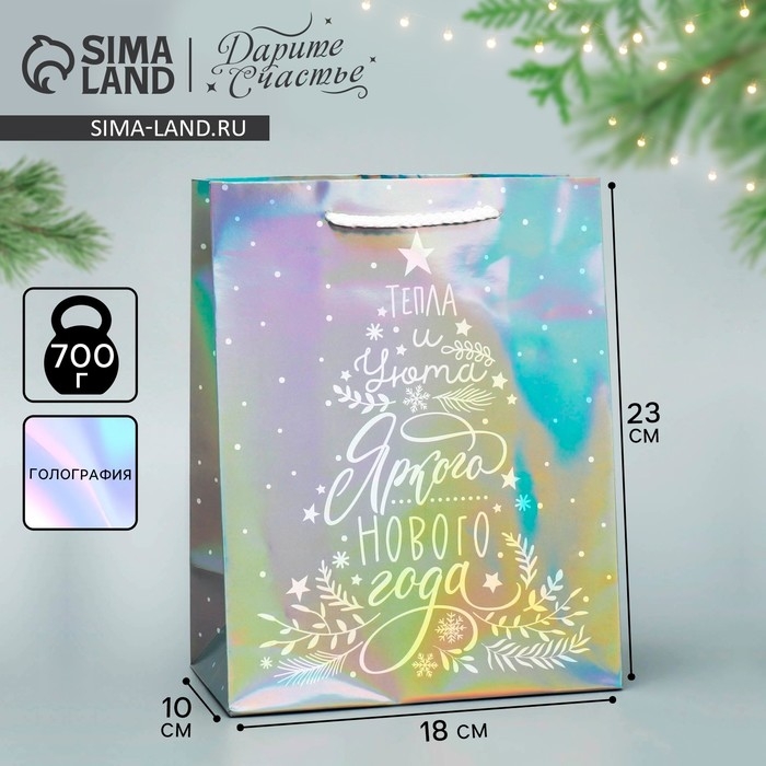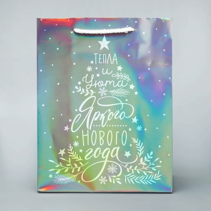 Пакет голографический «Тепла», MS 18 х 23 х 10 см, Новый год