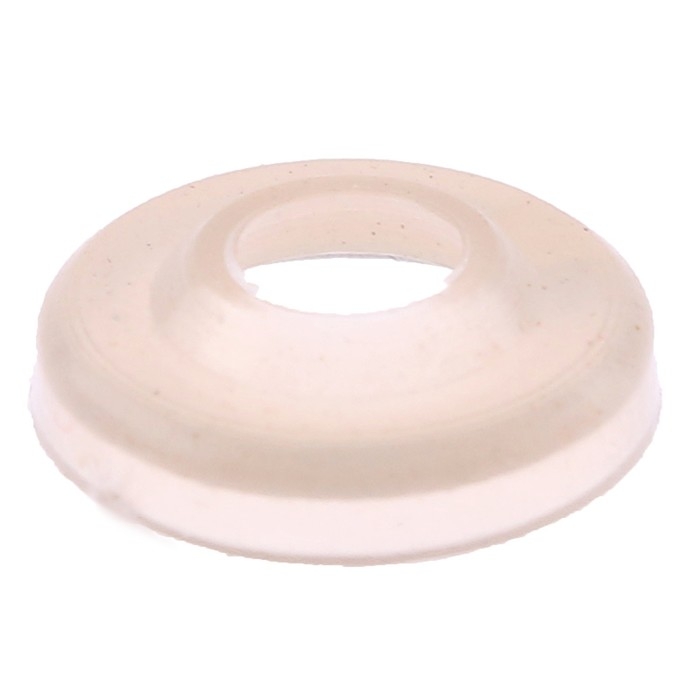 - С изнаночной стороны на винт наденьте шайбу и задвиньте до упора, плотно прижимая нос к ткани.