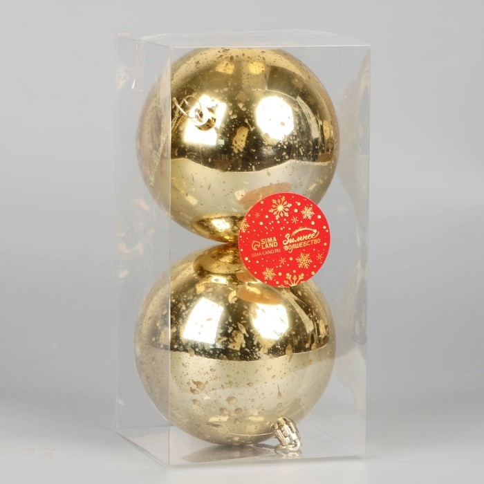 Набор шаров пластик d-10 см, 2 шт "Винтаж" золото