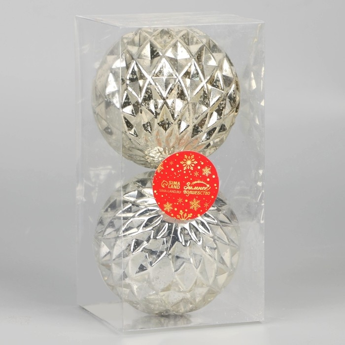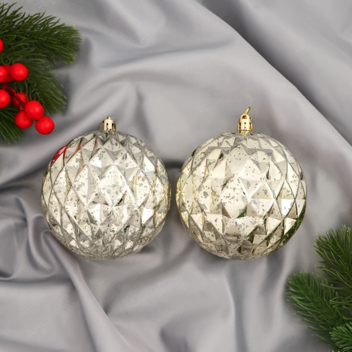 Набор шаров пластик d-10 см, 2 шт "Винтаж" грани, золото