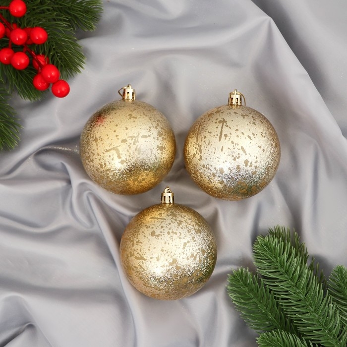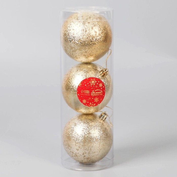 Набор шаров пластик d-8 см, 3 шт "Ретро" золото