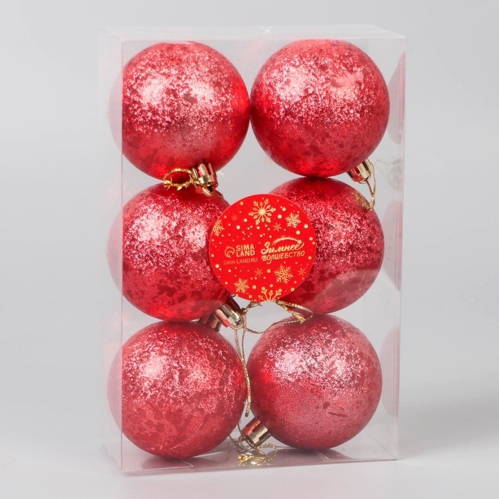 Набор шаров пластик d-6 см, 6 шт "Ретро" красный