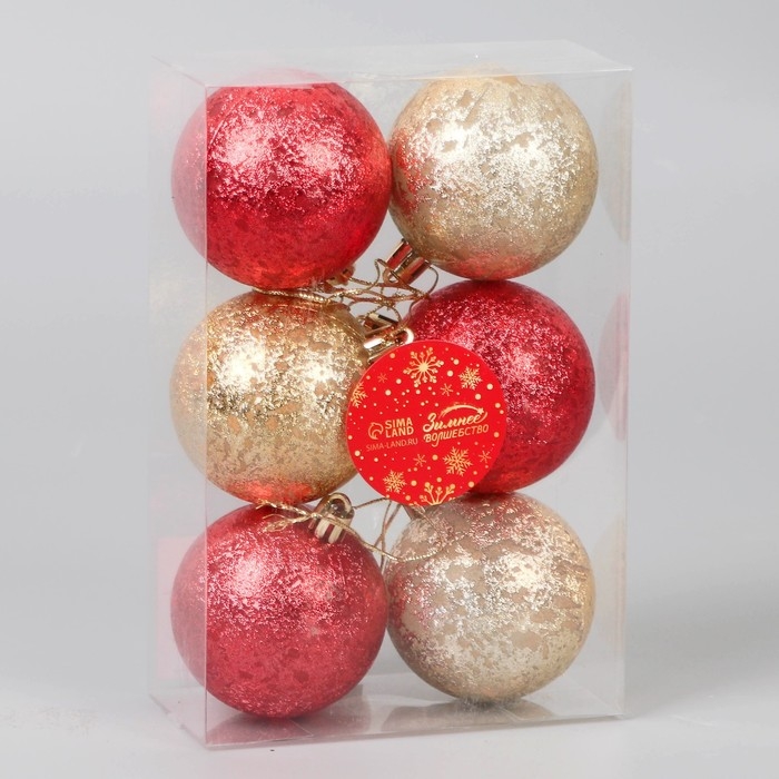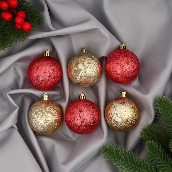 Набор шаров пластик d-6 см, 6 шт "Ретро" жёлтый красный