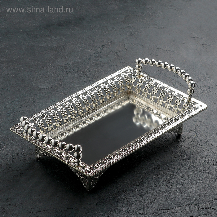 Поднос сервировочный «Серебряный жемчуг», 28×18 см, цвет серебряный