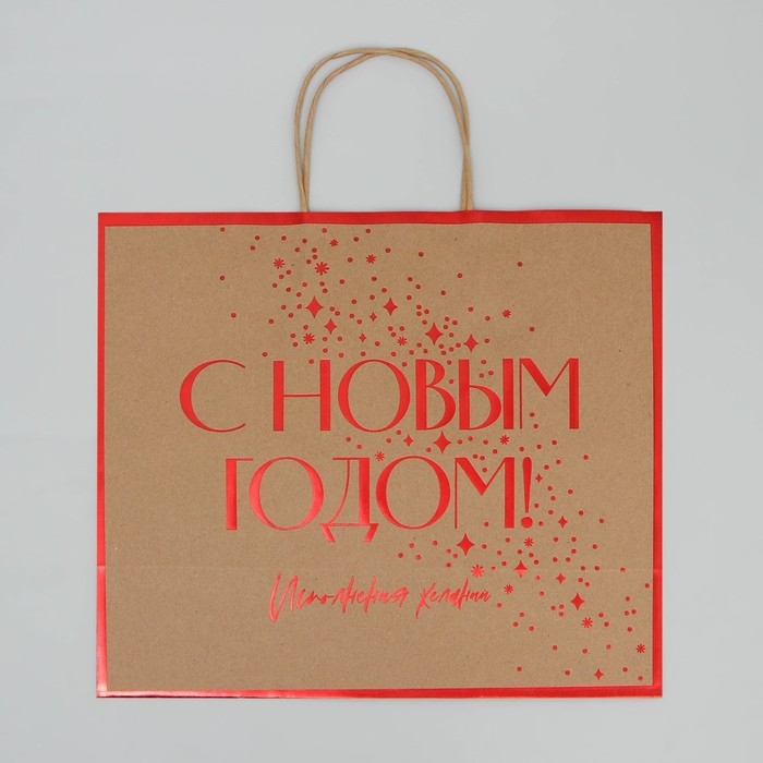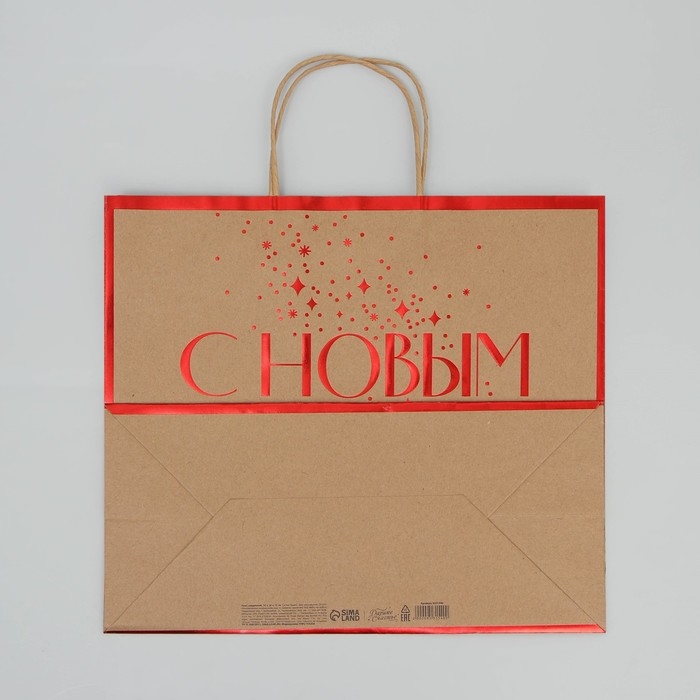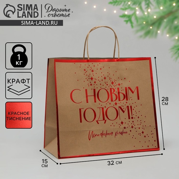 Пакет подарочный новогодний крафтовый «С Новым счастьем», 32 х 28 х 15 см, Новый год