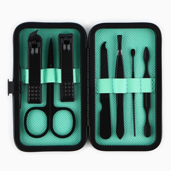 Набор маникюрный, 7 предметов, в футляре, цвет чёрный