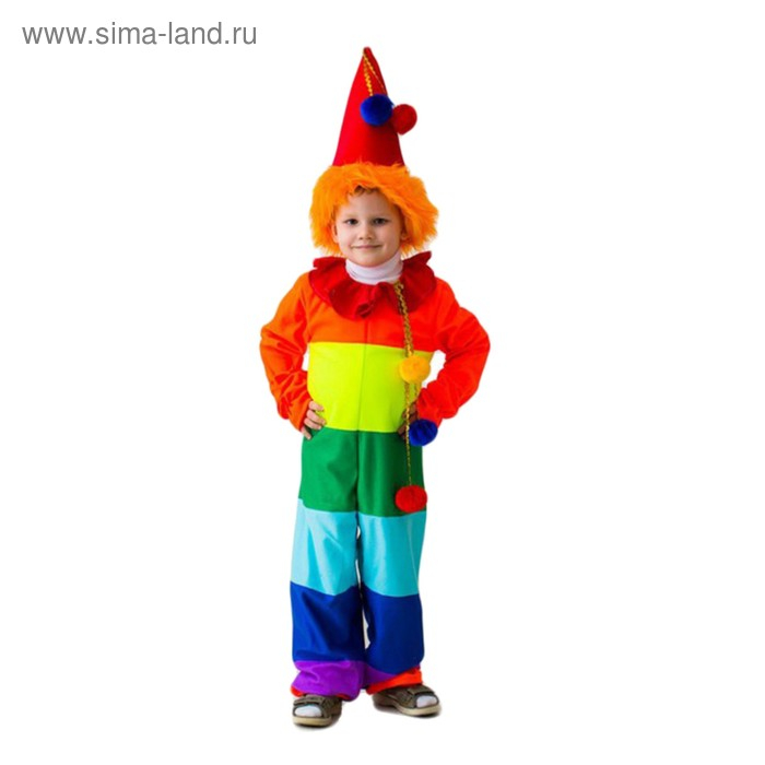Карнавальный костюм "Клоун радужный", комбинезон, колпак с волосами, рост 122-134 см