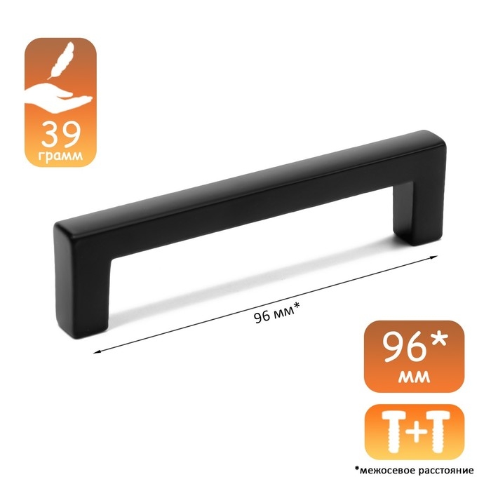 Ручка-скоба CAPPIO SQUARE RSC007, алюминий, м/о 96 мм, цвет черный