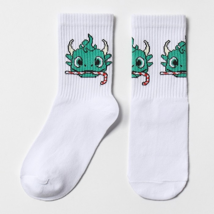 Новый год. Носки "Новогодний дракон", цвет белый, р-р 20 (32-34)