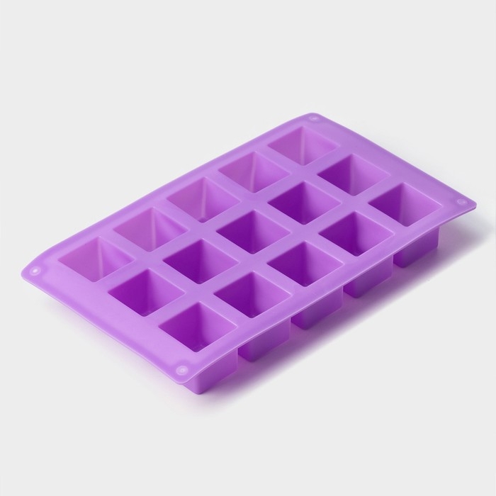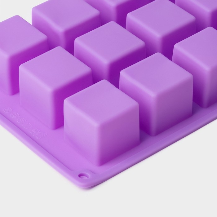 Форма для выпечки Доляна «Фигуры.Куб», силикон, 26×15×3,2 см, 15 ячеек (3,4×3,4см), цвет фиолетовый