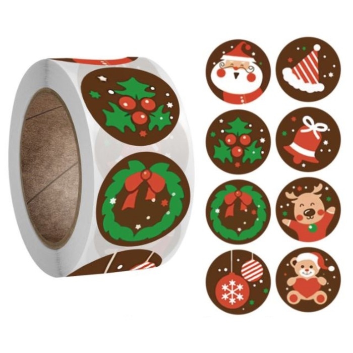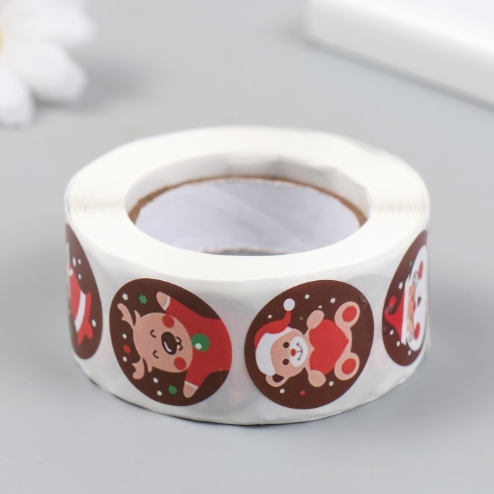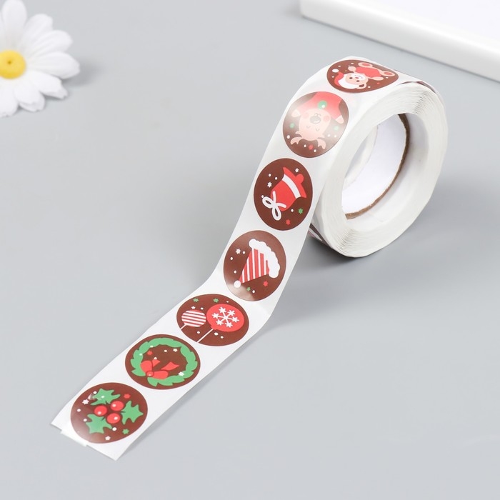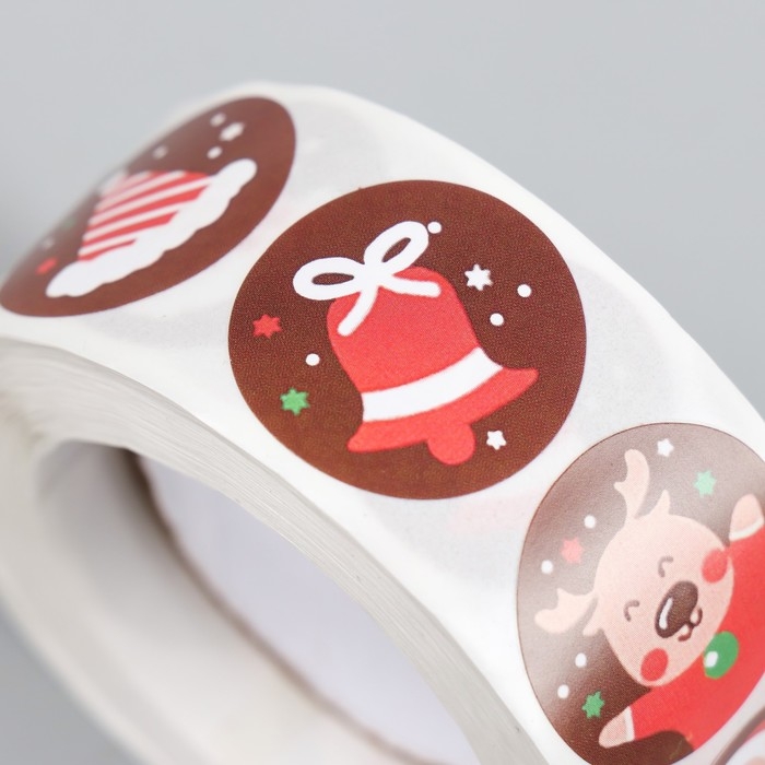 Наклейка бумага "Новогодние радости" d=2,5 см 500 шт в рулоне 3х6,5х6,5 см