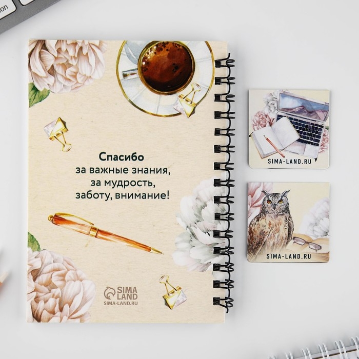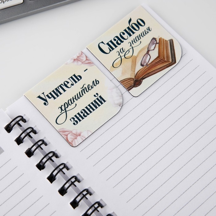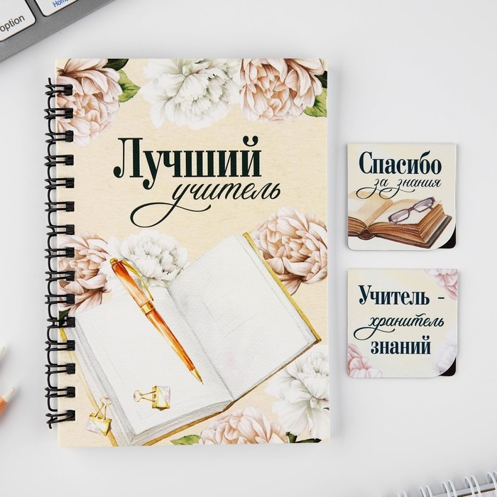 Подарочный набор: блокнот А6, 60 листов и магнитные закладки 2 шт «Учителю: Лучший учитель»