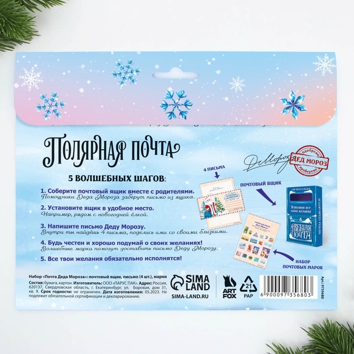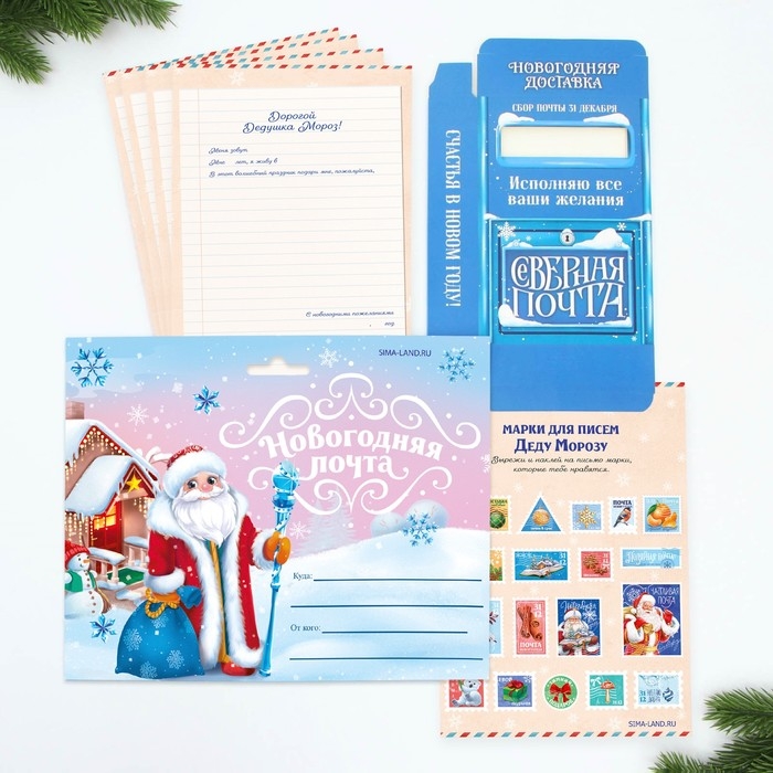 Подарочный набор новогодний, почта Деда Мороза: почтовый ящик, письма (4шт.), марки «Новогодняя почта»