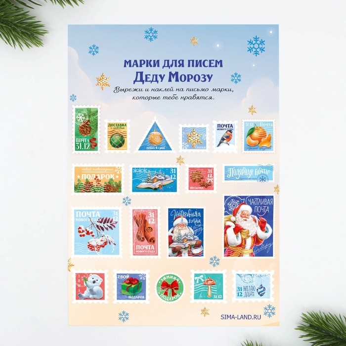 Волшебные марки помогут доставить письмо Деду Морозу.