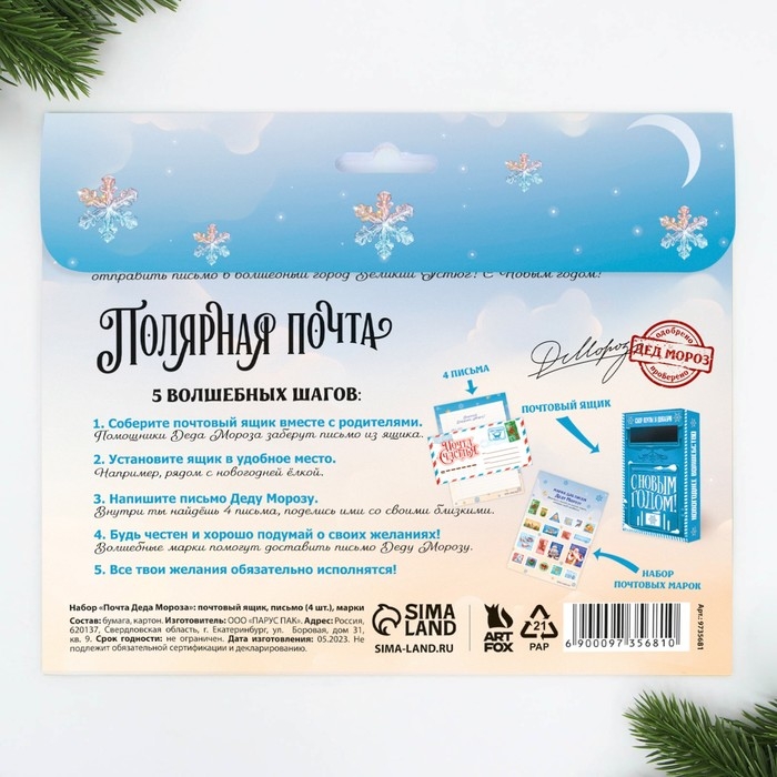 Подарочный набор новогодний, письмо Деду Морозу почтовый ящик письма (4шт.), марки «Полярная почта»