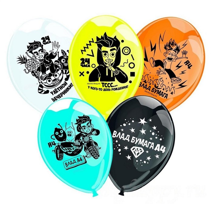 Шар латексный 12" «Влад А4», набор 5 шт., МИКС