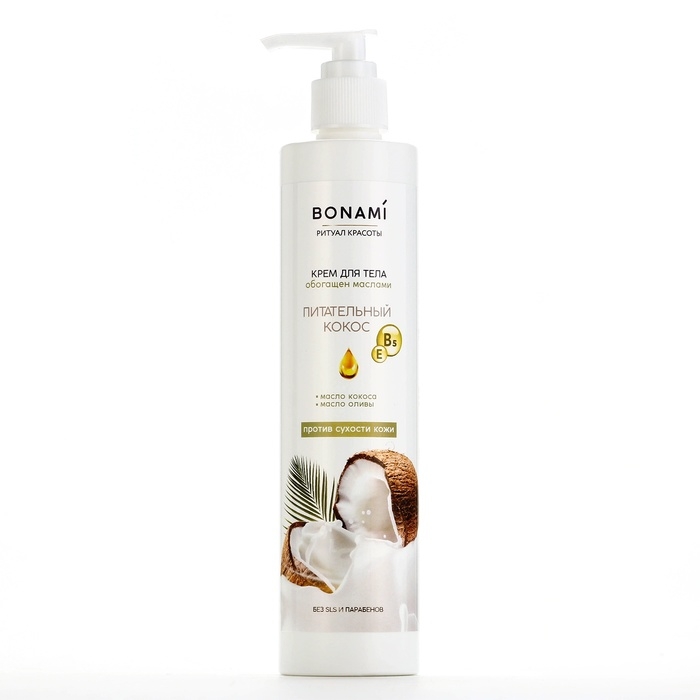 Крем для тела против сухости кожи с маслом кокоса и оливы, 300 мл, BONAMI