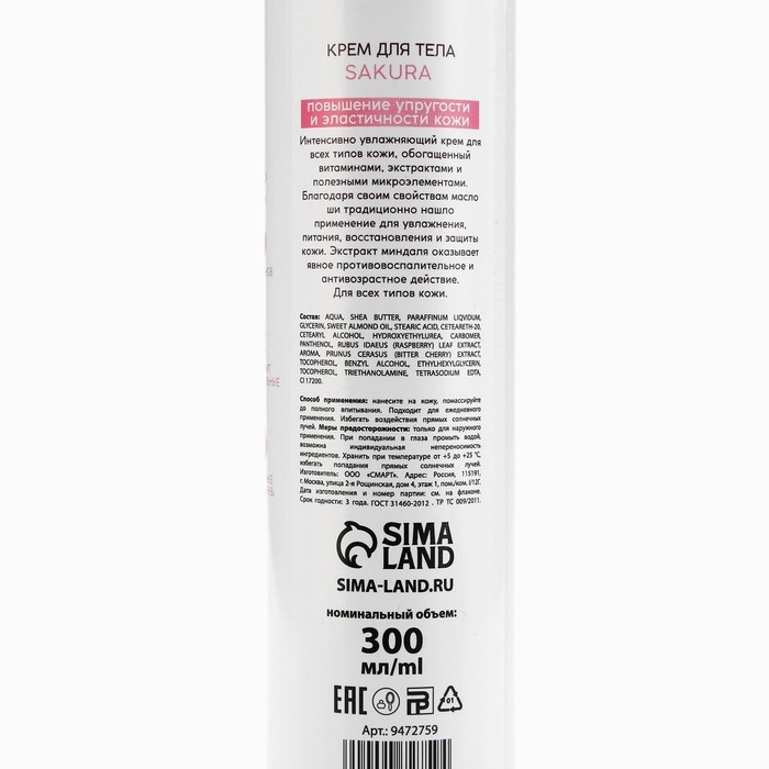Крем для тела с маслом ши и миндаля, увлажнение, 300 мл, BONAMI