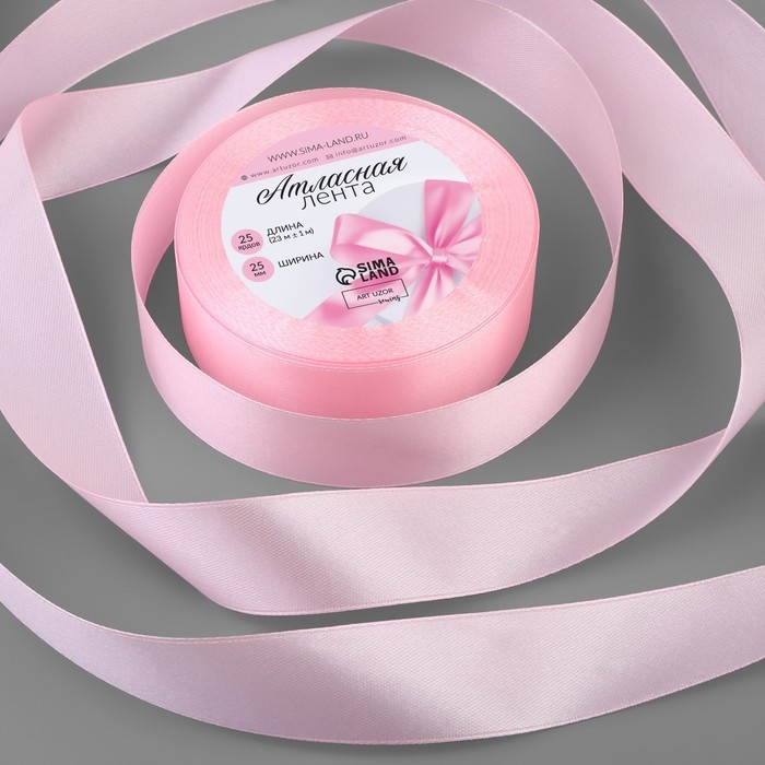 Лента атласная, 25 мм × 23 ± 1 м, цвет розовая гвоздика №277