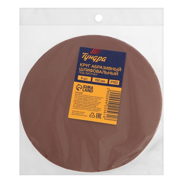 Круг абразивный шлифовальный под "липучку" ТУНДРА, 150 мм, Р150, 5 шт.