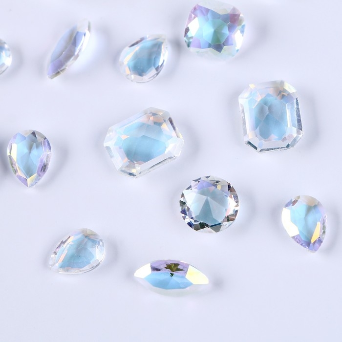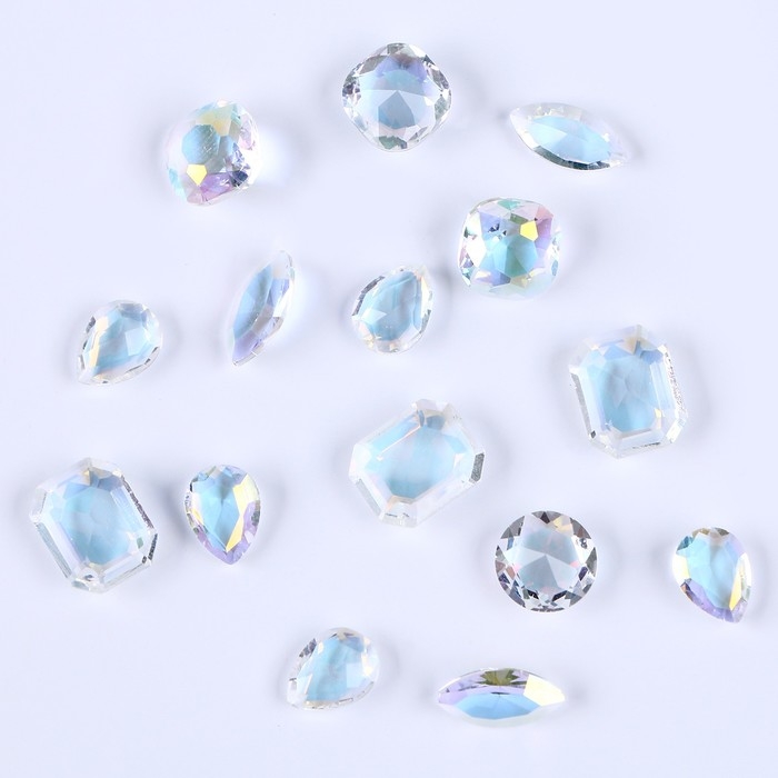 Камешки декоративные для творчества, набор 15 шт., цвет прозрачный, камни — от 6 до 14 мм