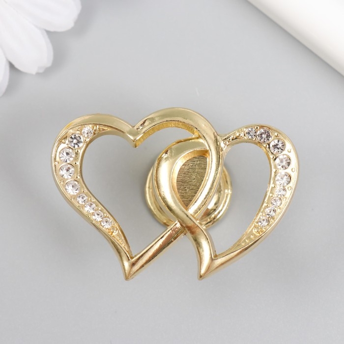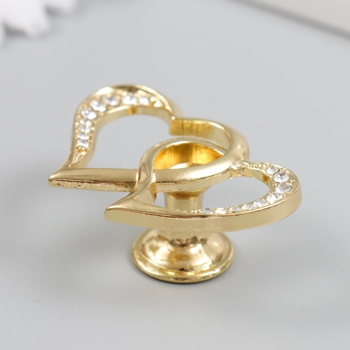 Ручка для шкатулки металл "Два сердца" стразы, золото 3,8х5,4х2,4 см