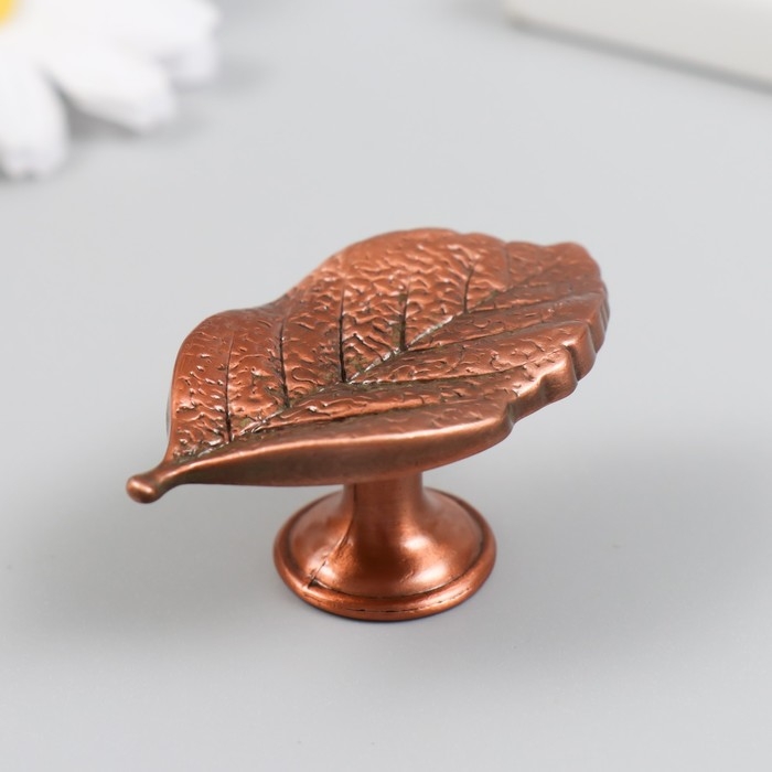 Ручка для шкатулки металл "Лист" медь 5,2х2,8 см