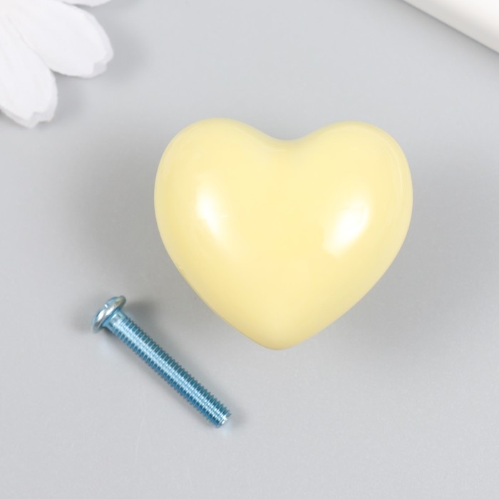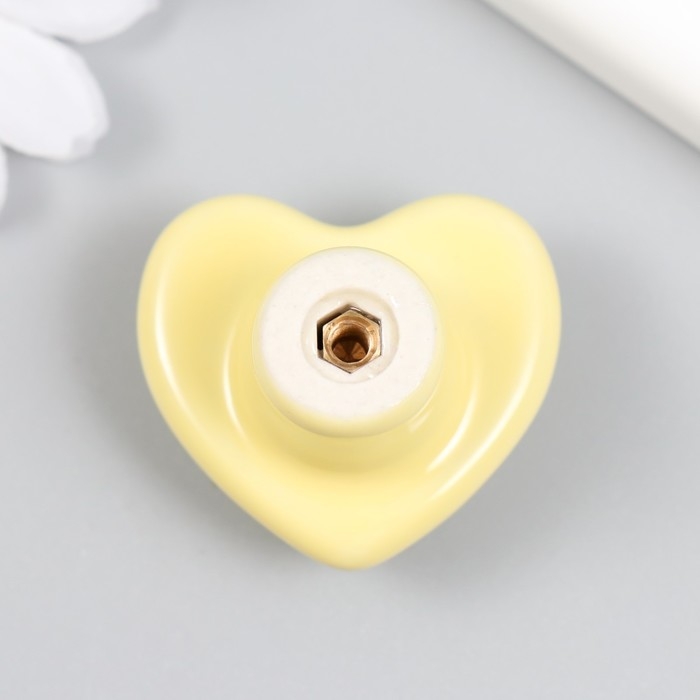 Ручка для шкатулки керамика, металл "Сердечко" жёлтая 3,8х3,8х3 см