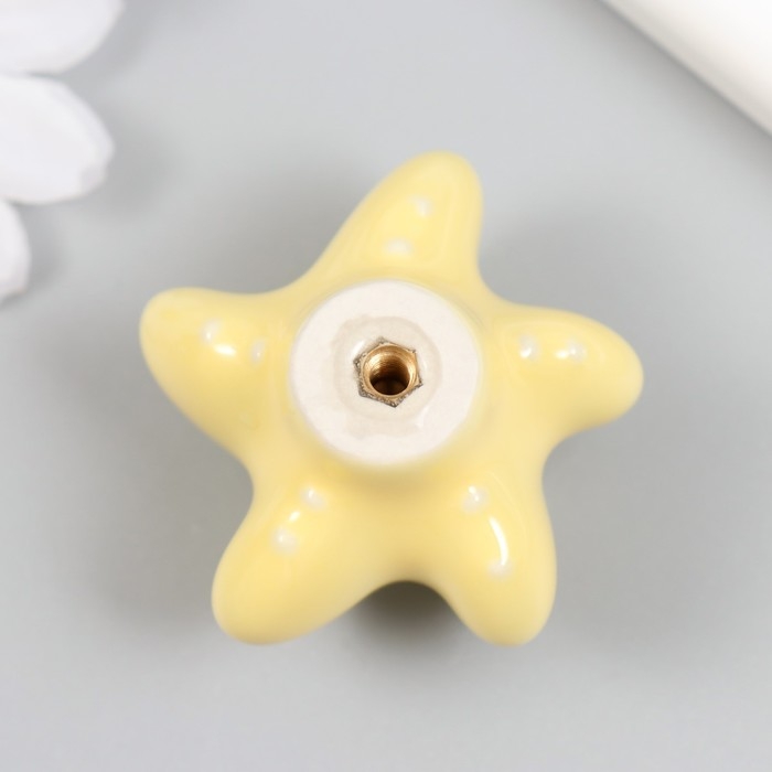 Ручка для шкатулки керамика, металл "Моская звезда" жёлтая 4,6х4,6х3,3 см