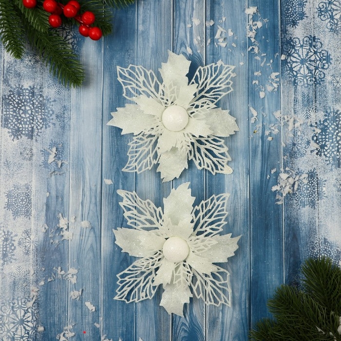 Украшение ёлочное "Снежный цветок" (набор 2 шт) 15 см, белый