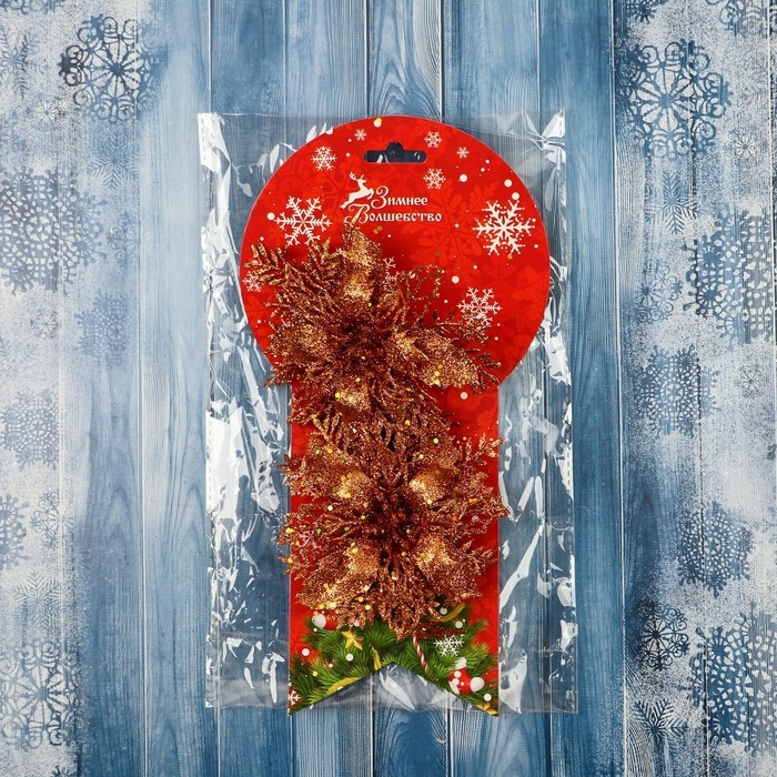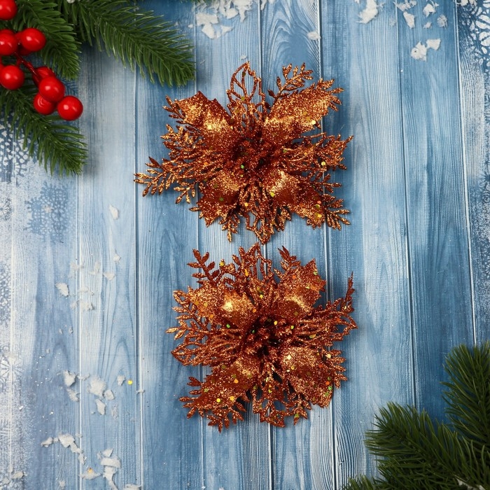Украшение ёлочное "Драгоценный цветок" (набор 2 шт) с веточками, 12 см, золото