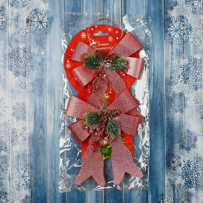 Украшение ёлочное "Бант элит" (набор 2 шт) 12х14 см, розовый