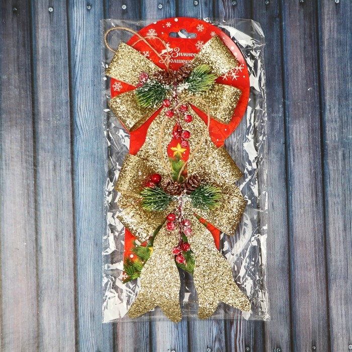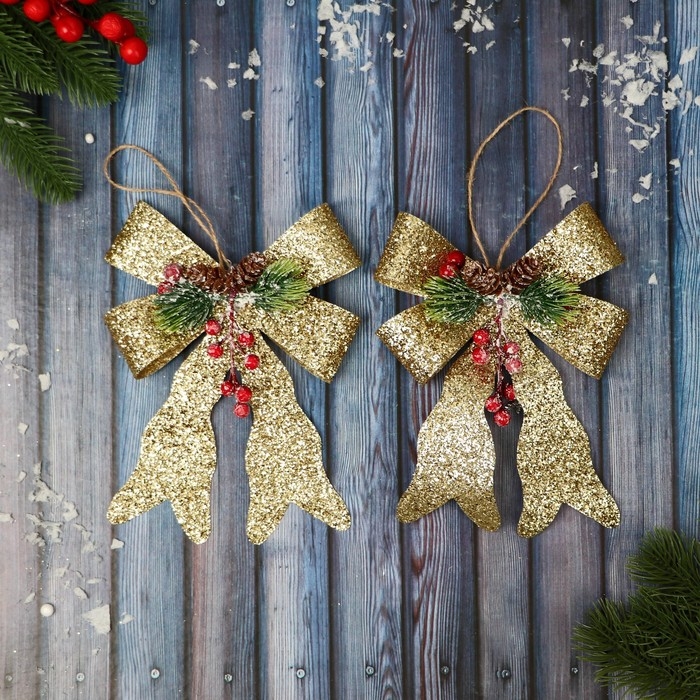 Украшение ёлочное "Бант элит" (набор 2 шт) 12х14 см, золото