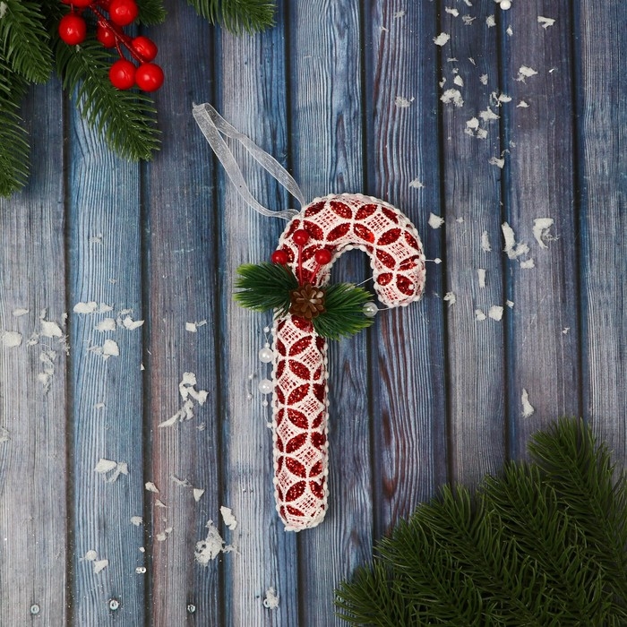 Украшение ёлочное "Леденец " кружево шишка, 7х15 см, красно-белый