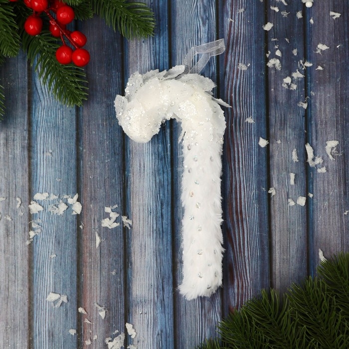 Украшение ёлочное "Леденец " пайетки, 7х15 см, белый